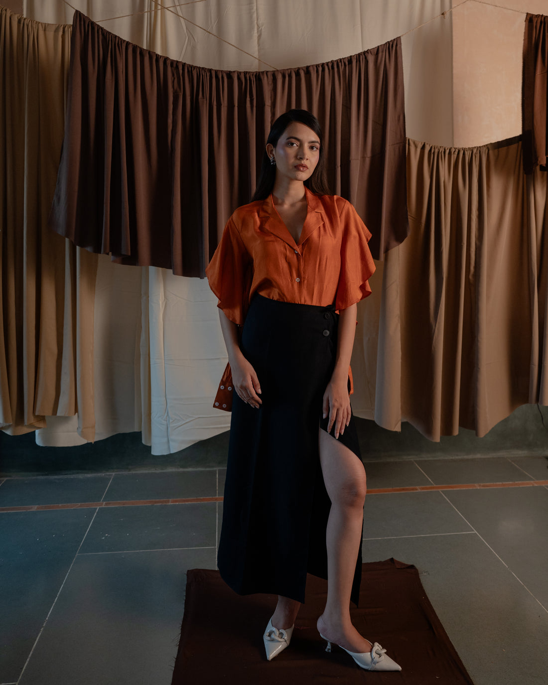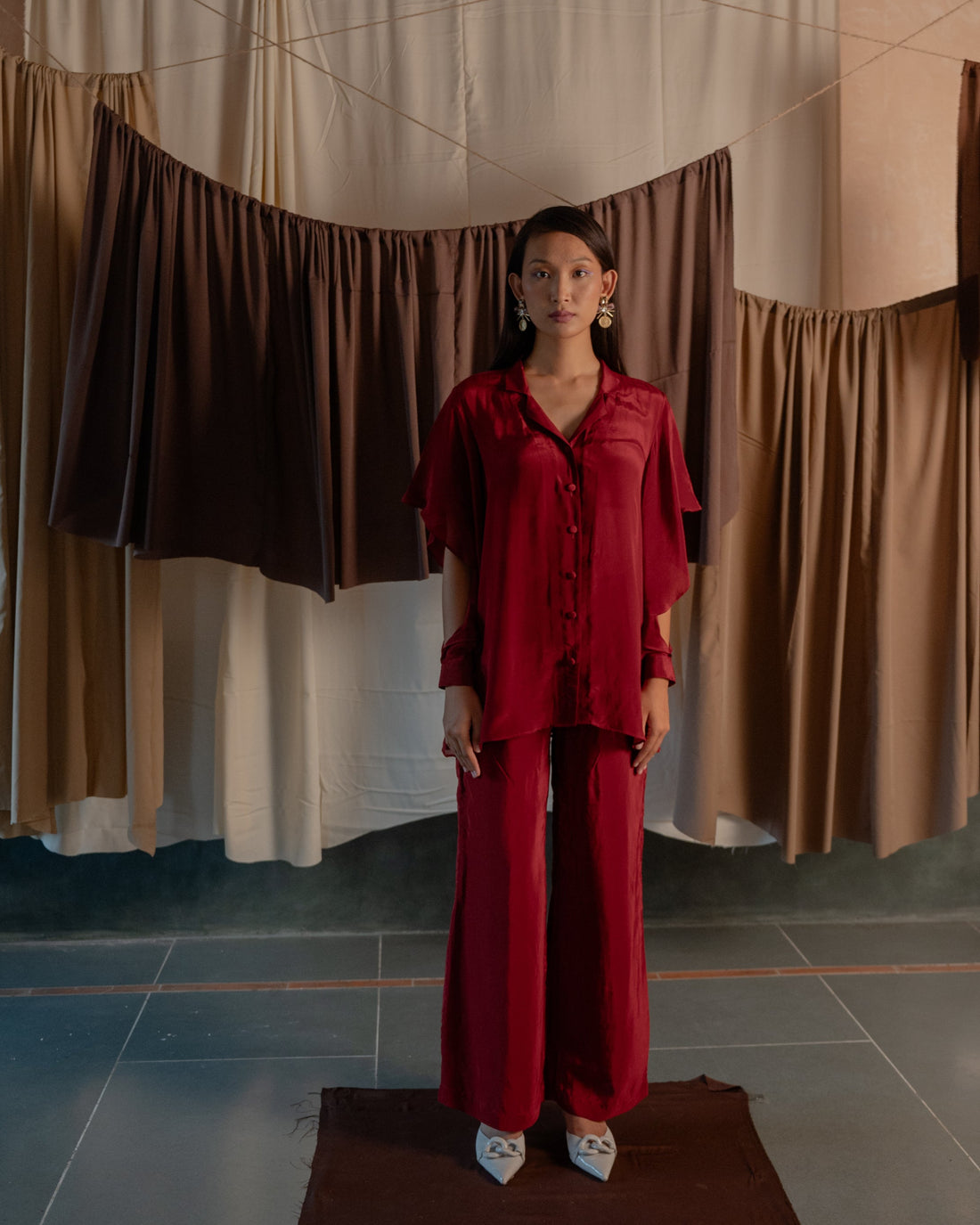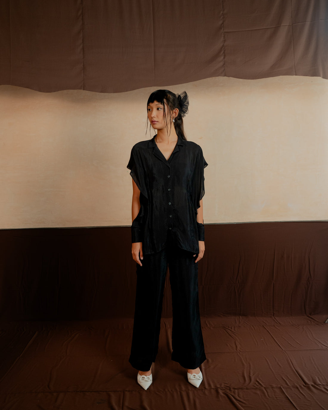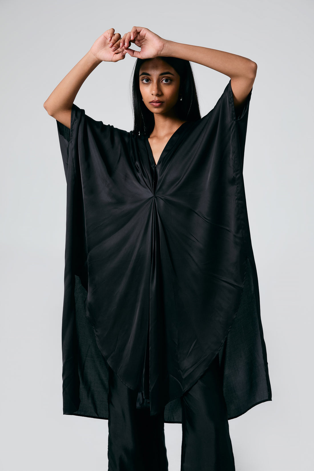 This shirt is designed with elegant gathers from the waist up and a sleek straight...