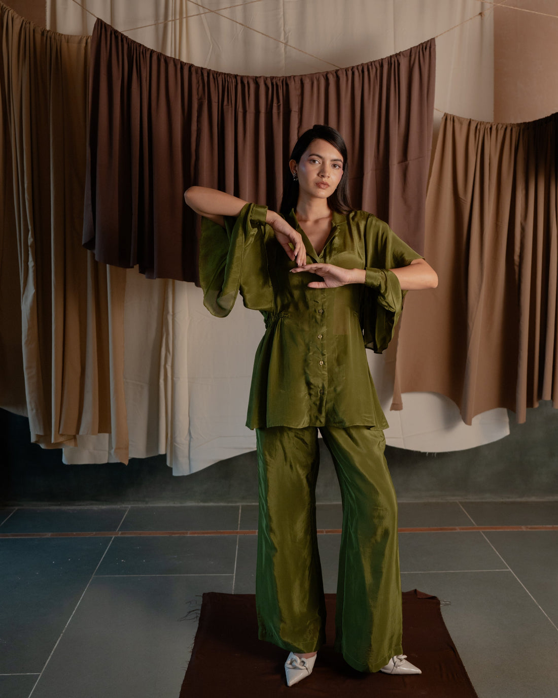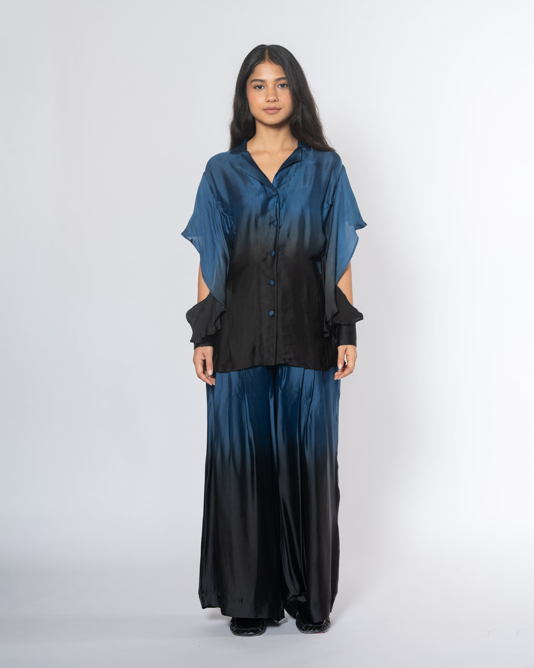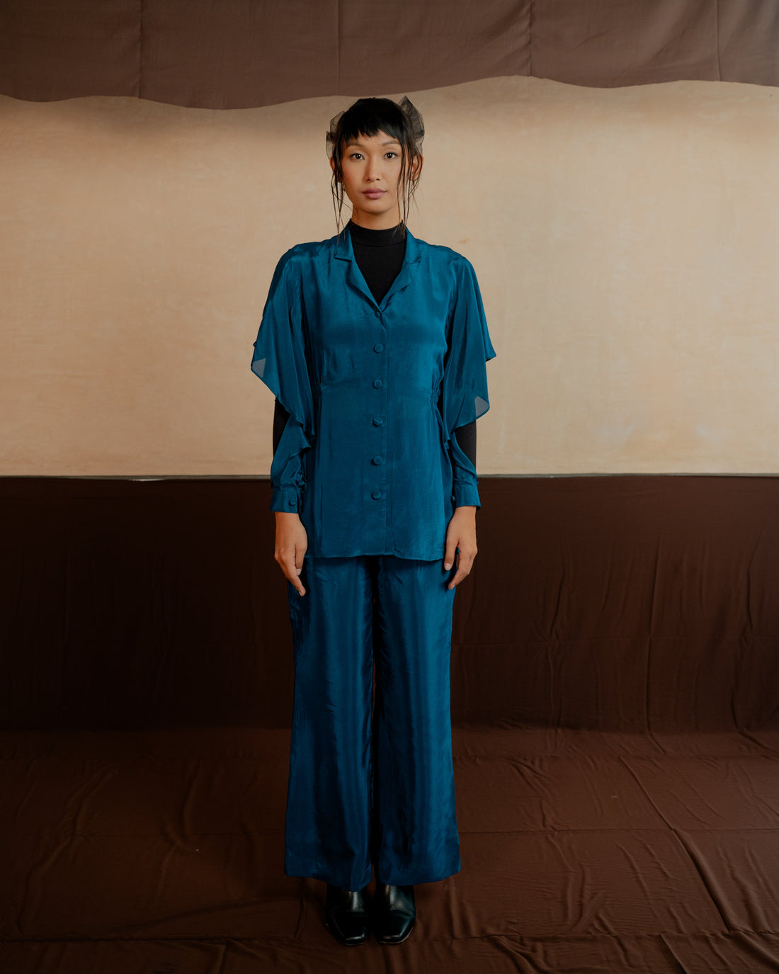 This shirt's delicate frill sleeves add a touch of feminine charm while the straight pants...