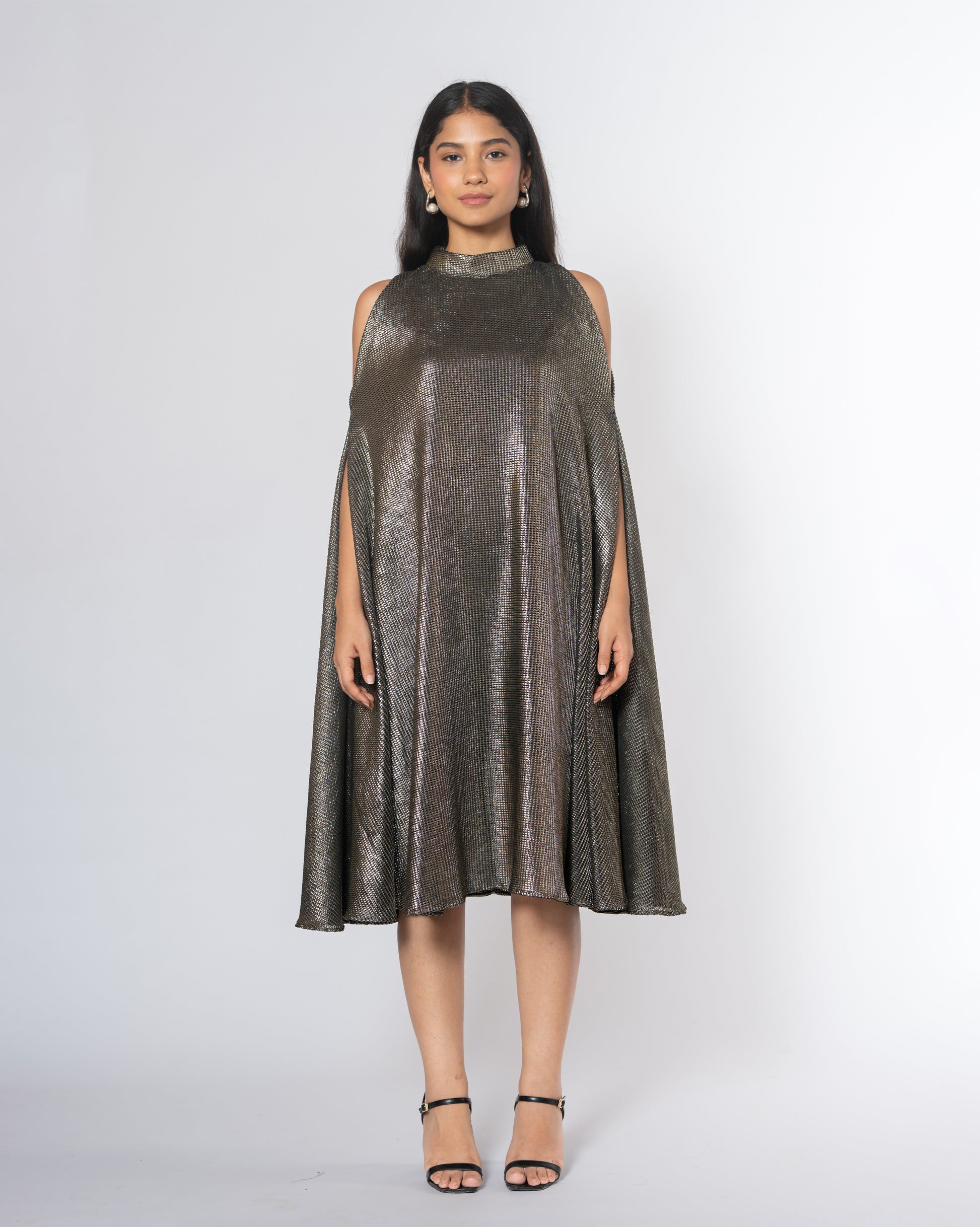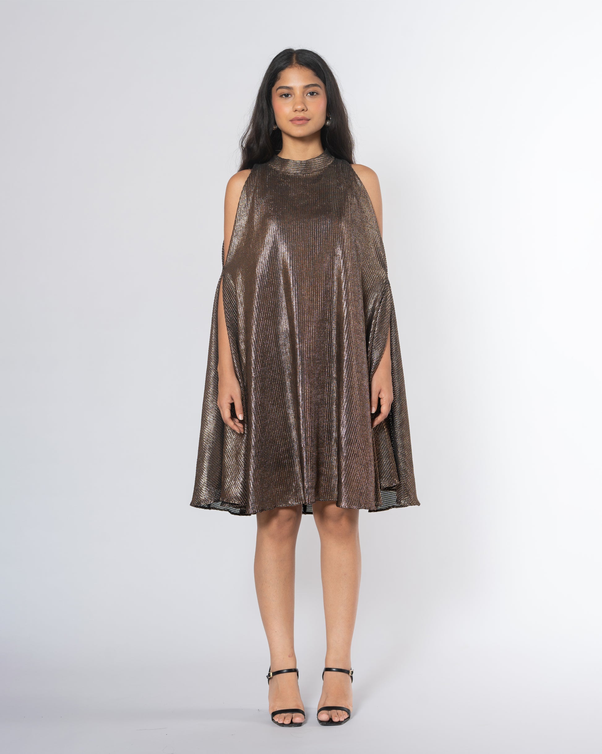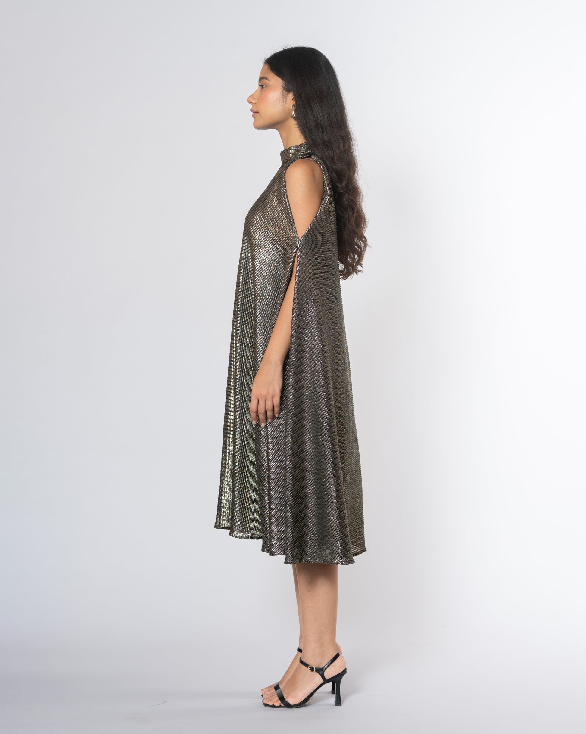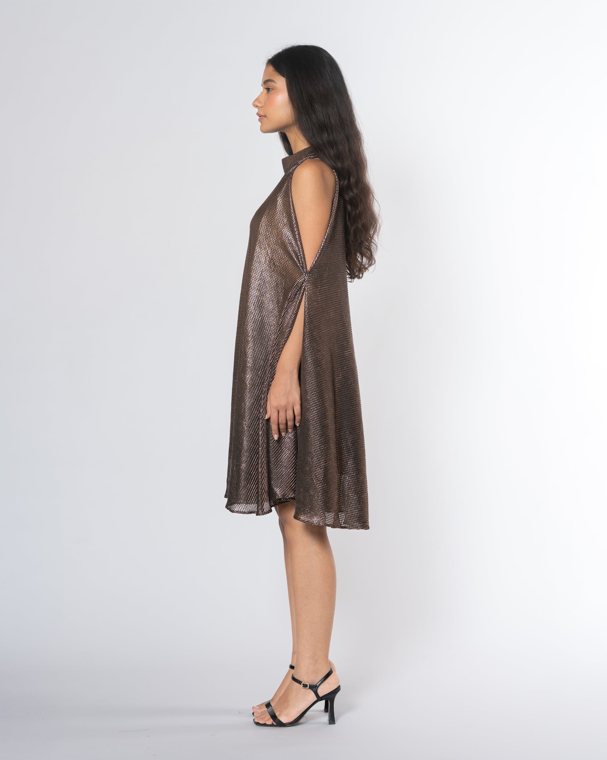 Metallic Cold Shoulder Dress
