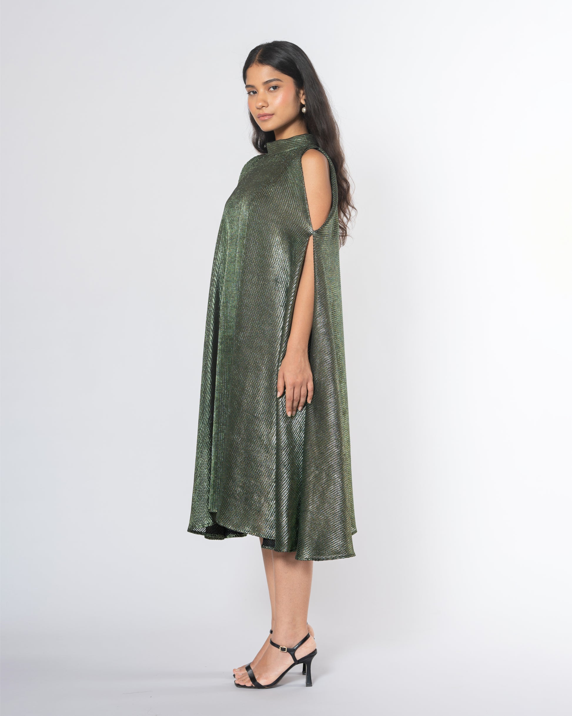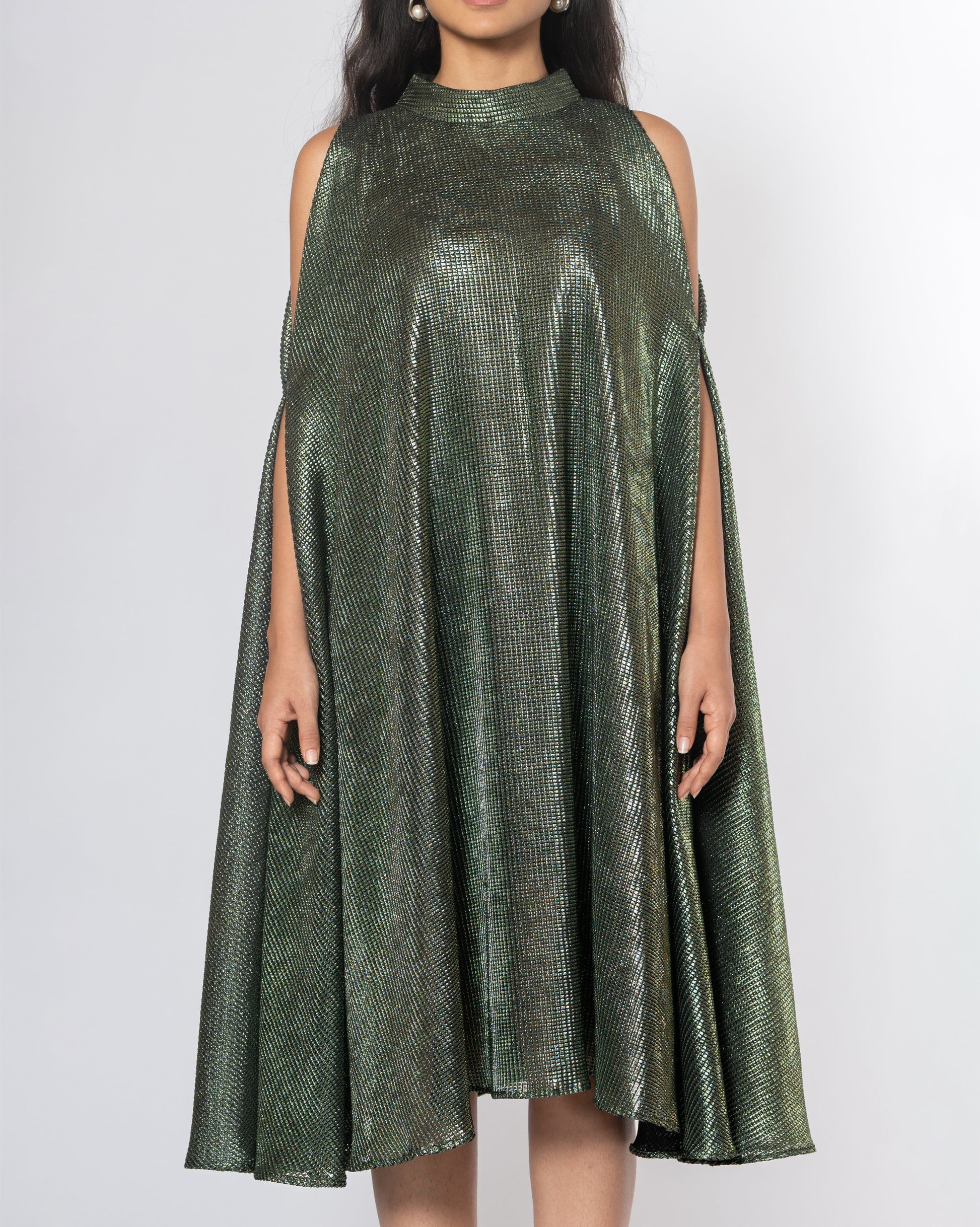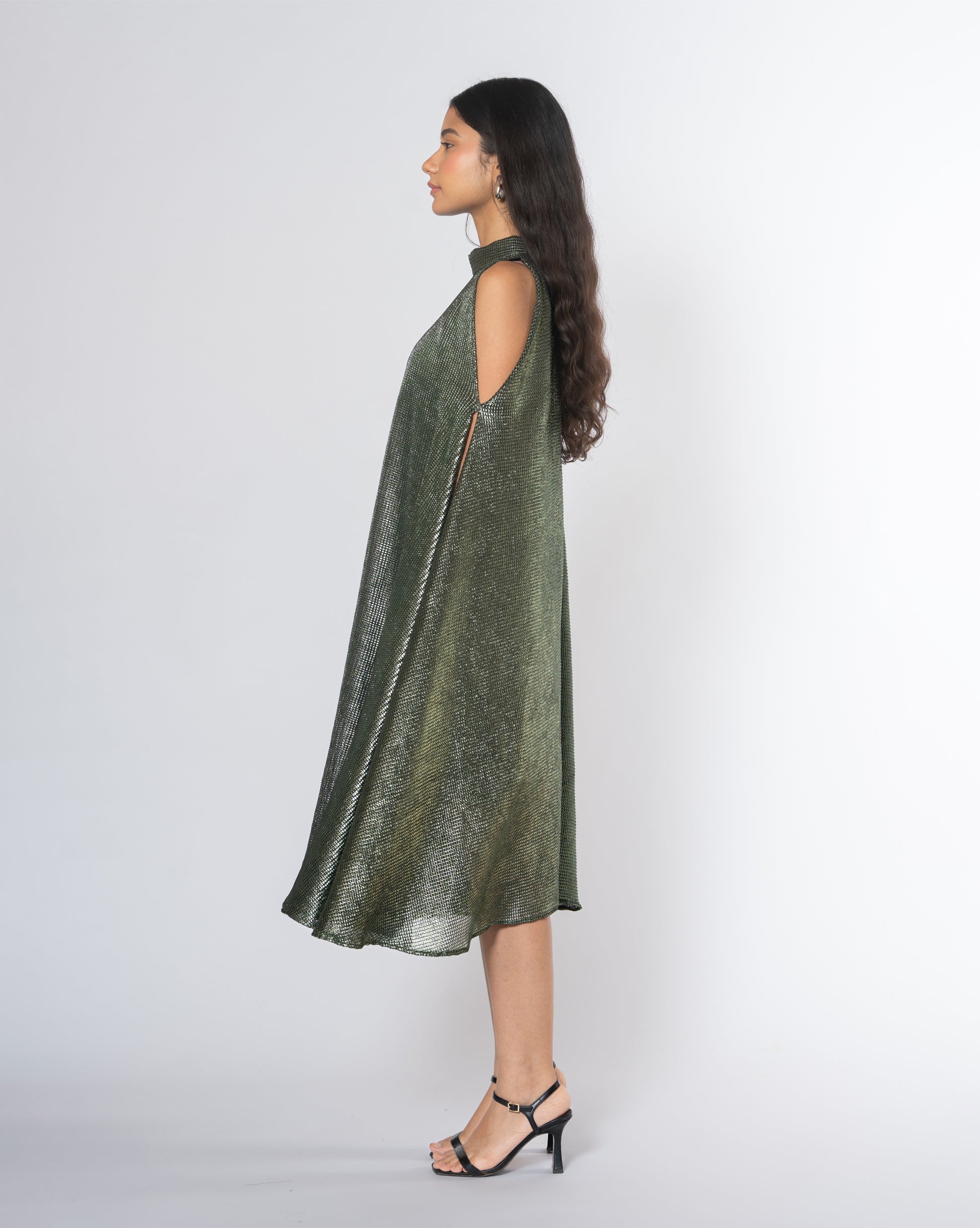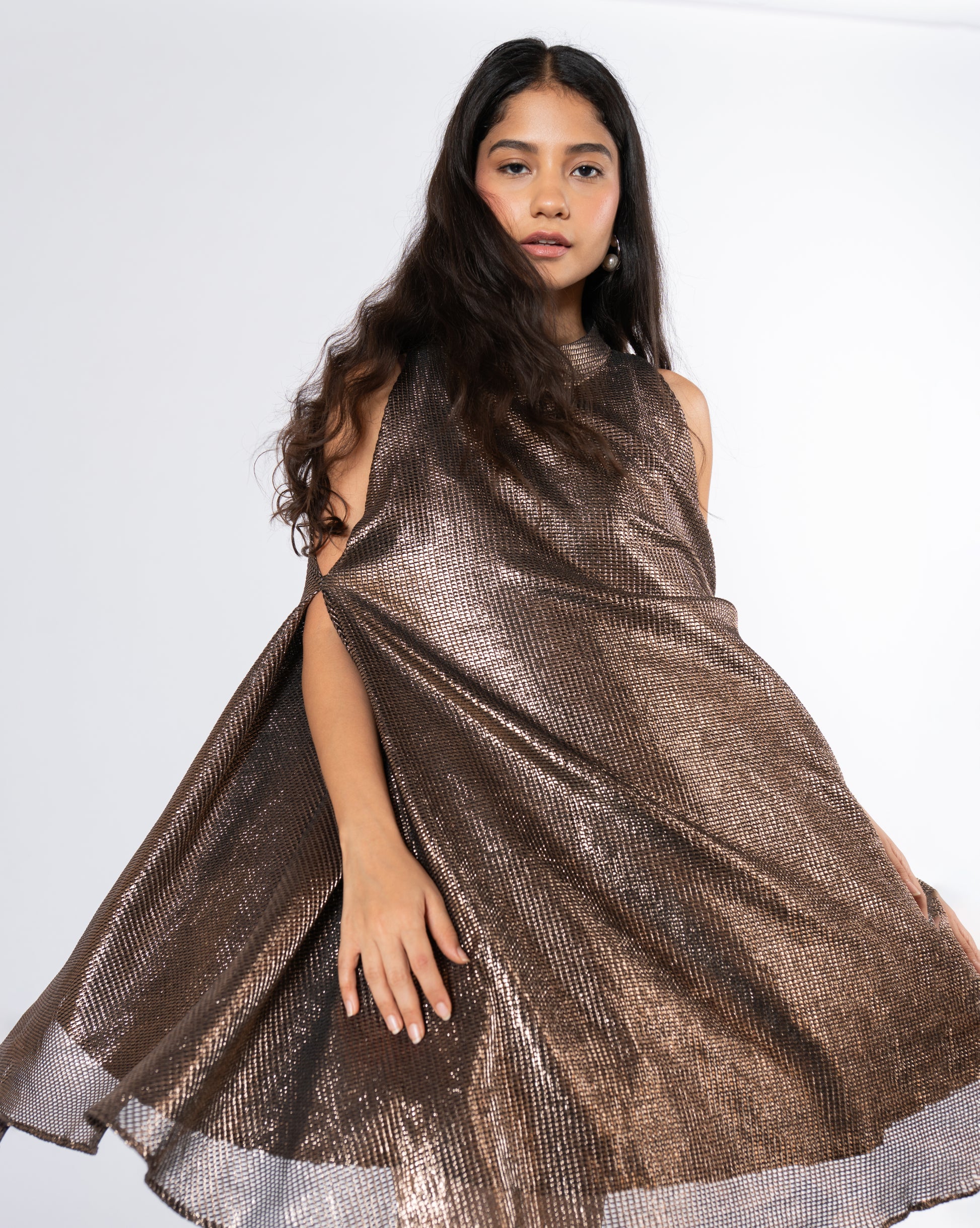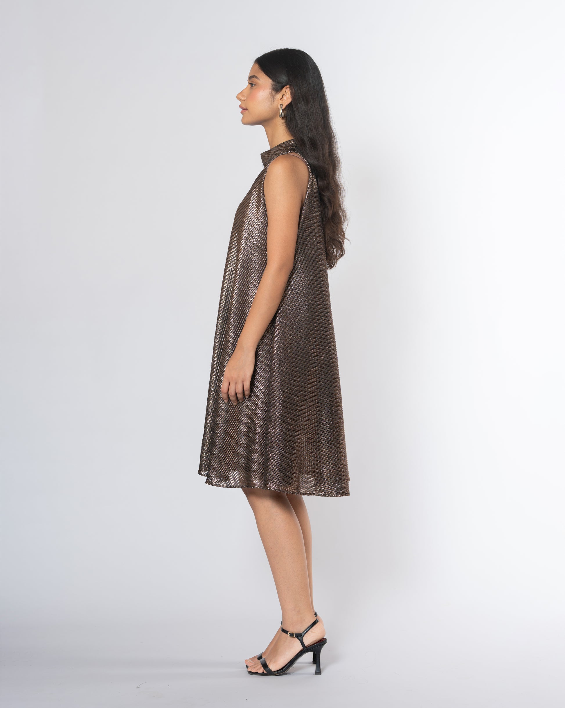 Metallic Cold Shoulder Dress