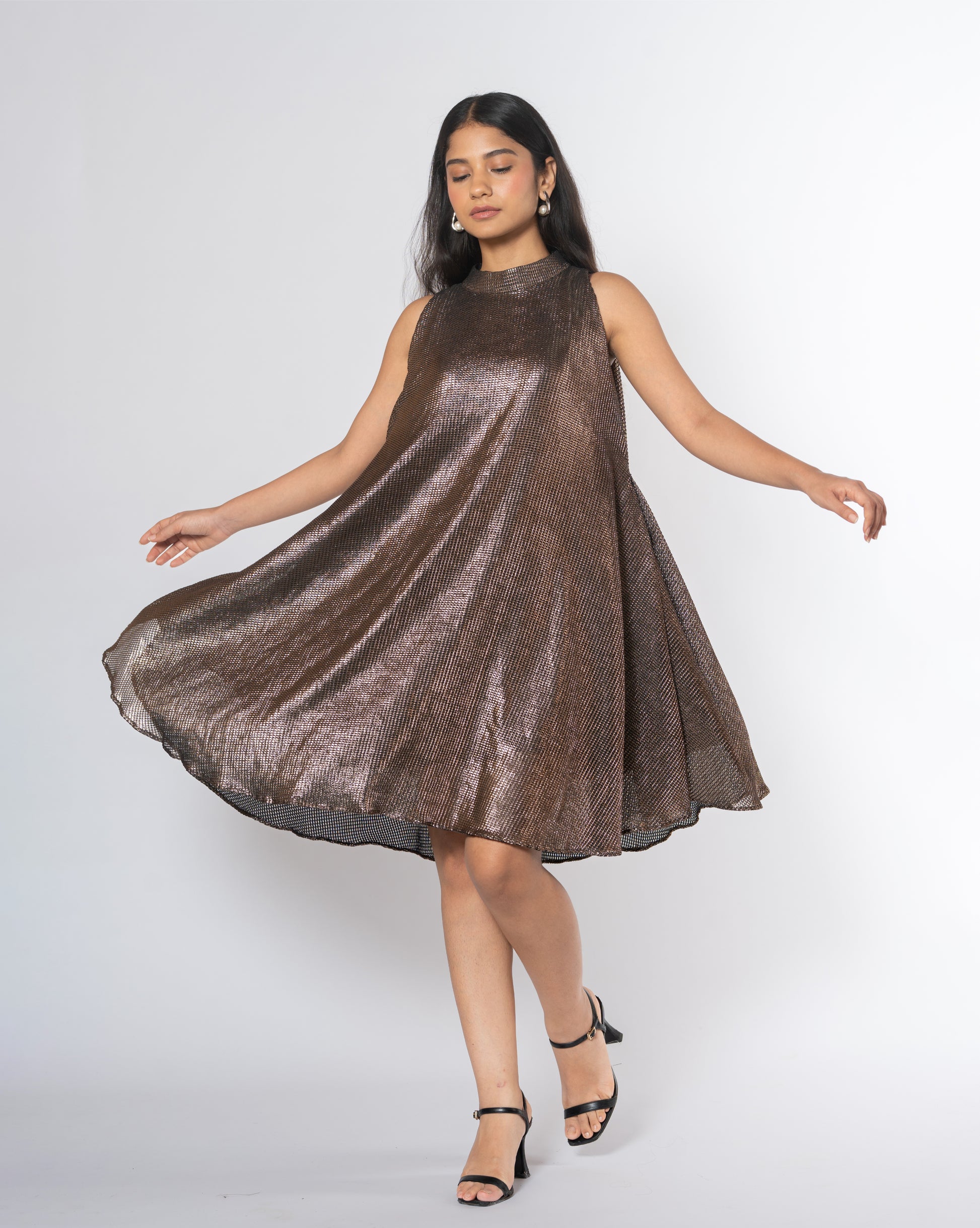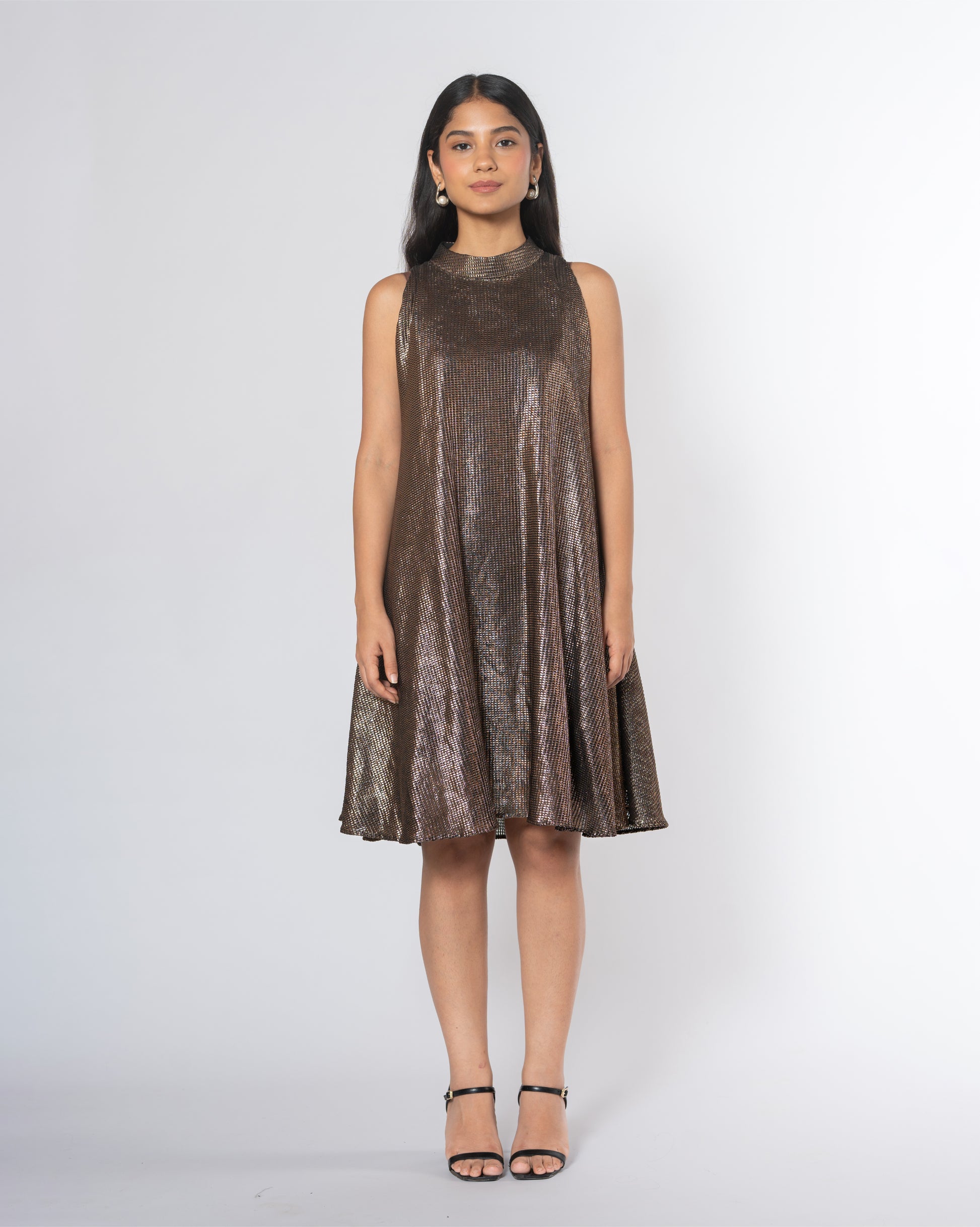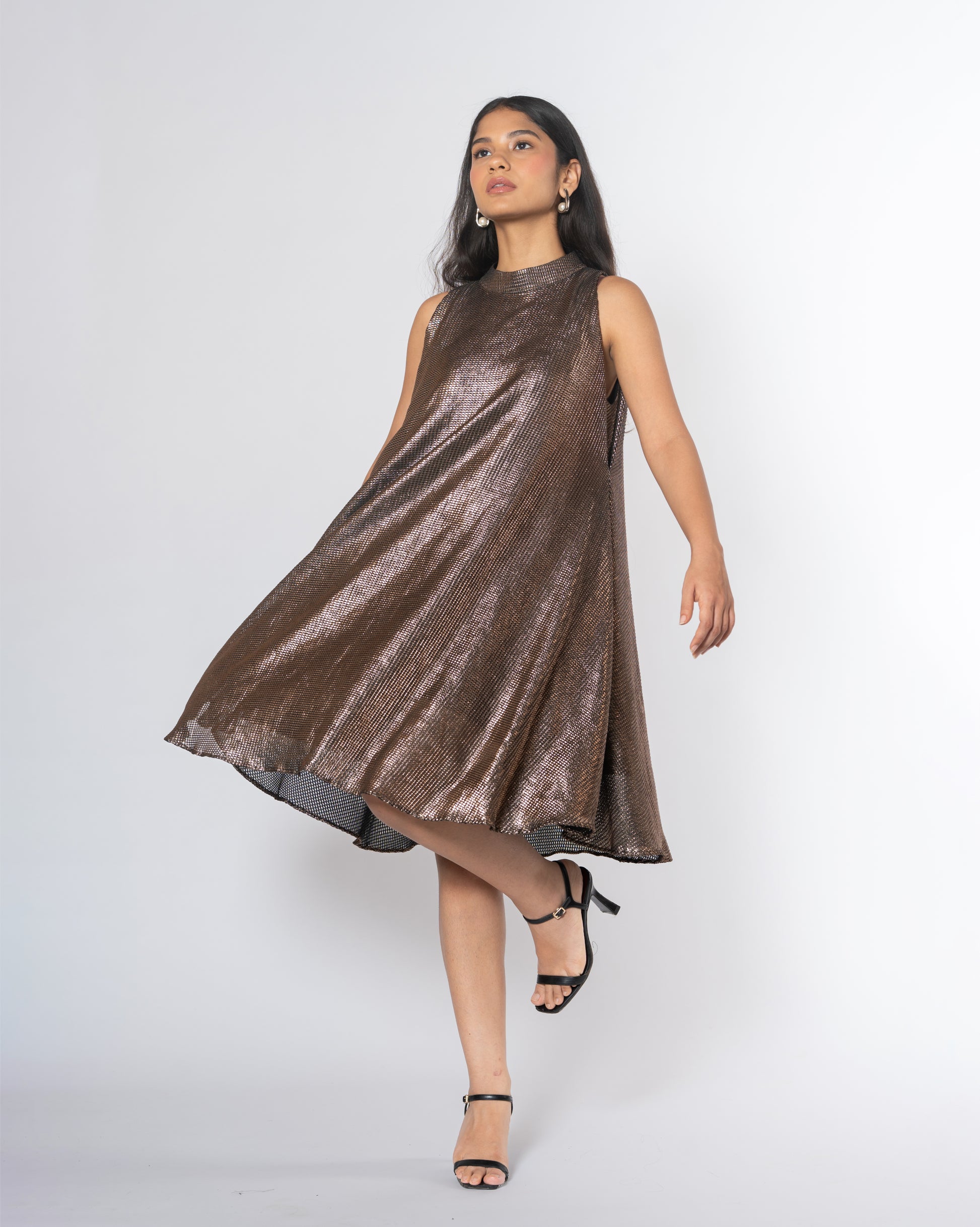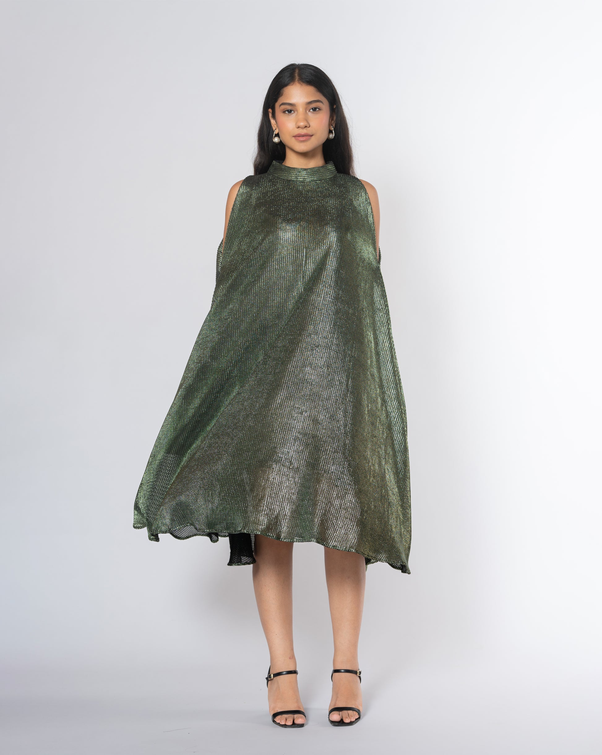 Metallic Cold Shoulder Dress