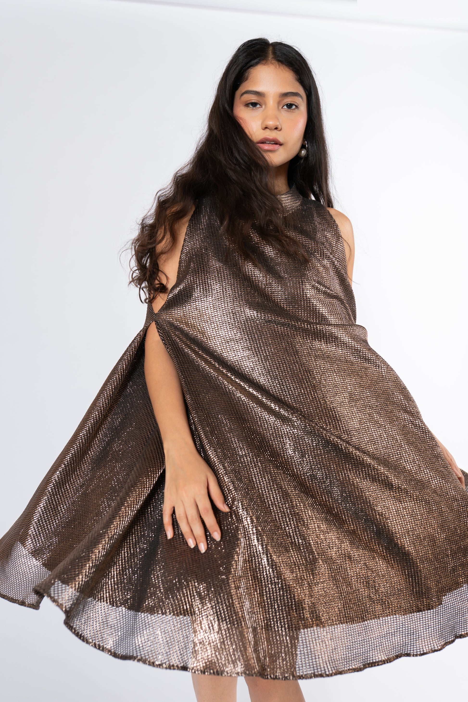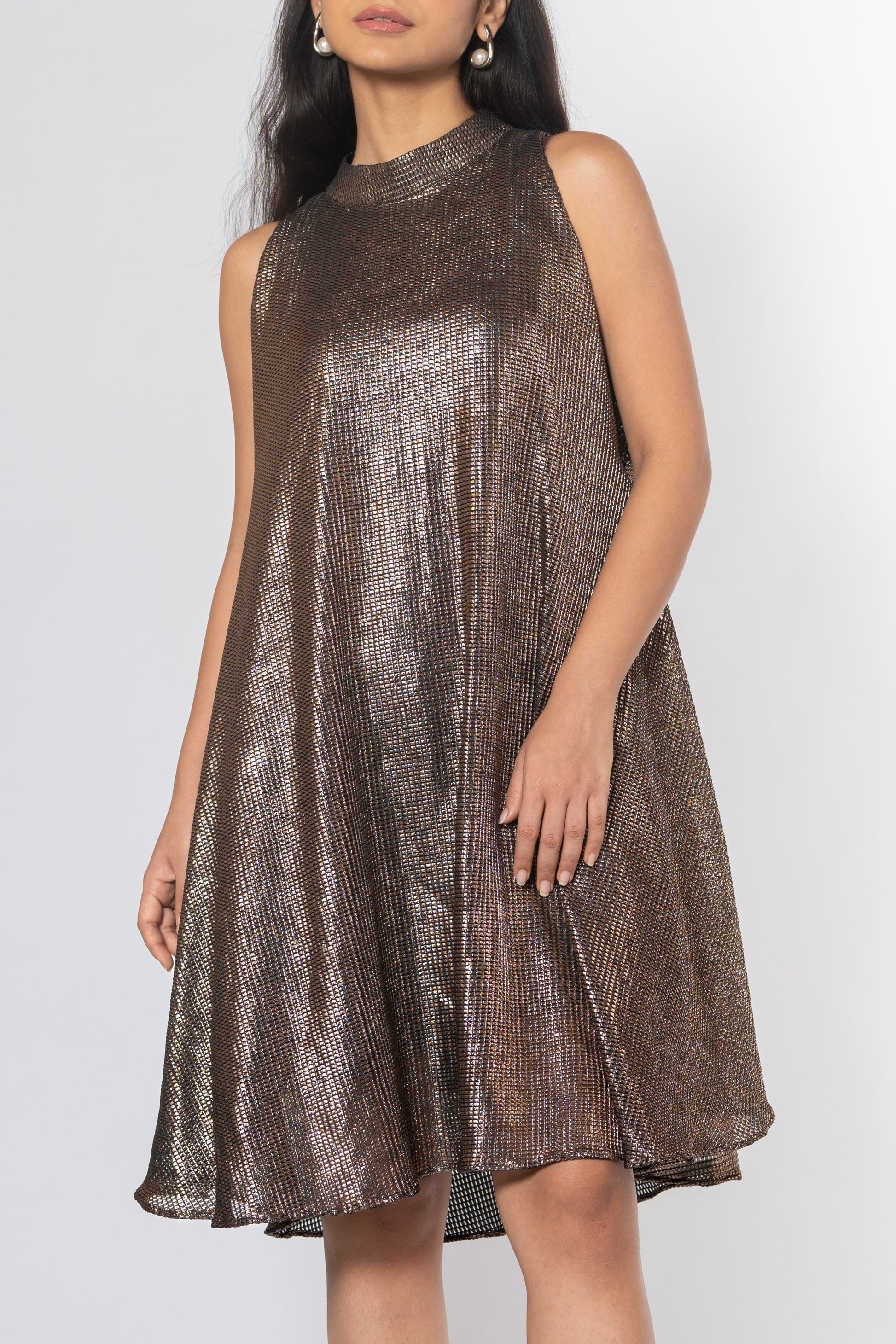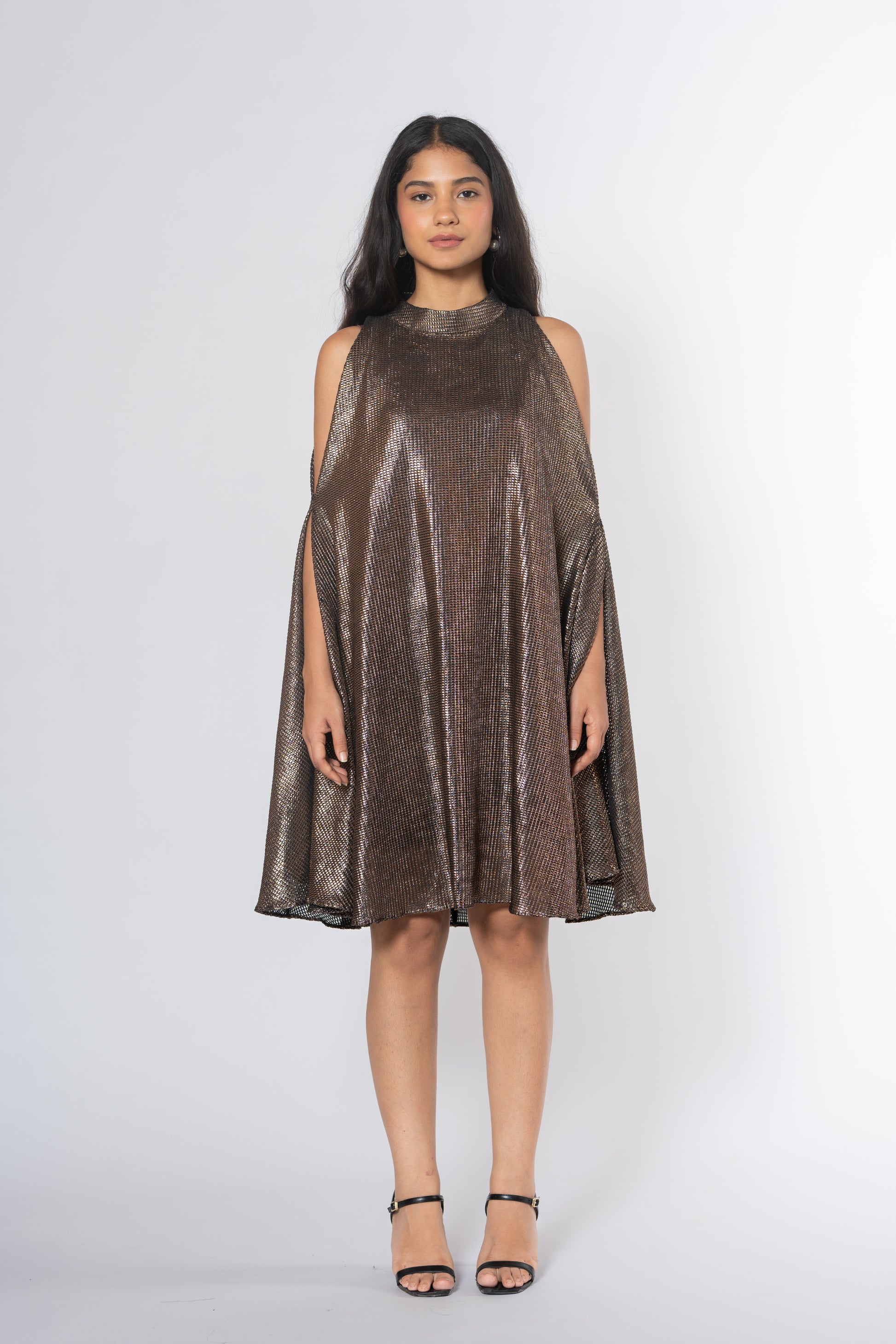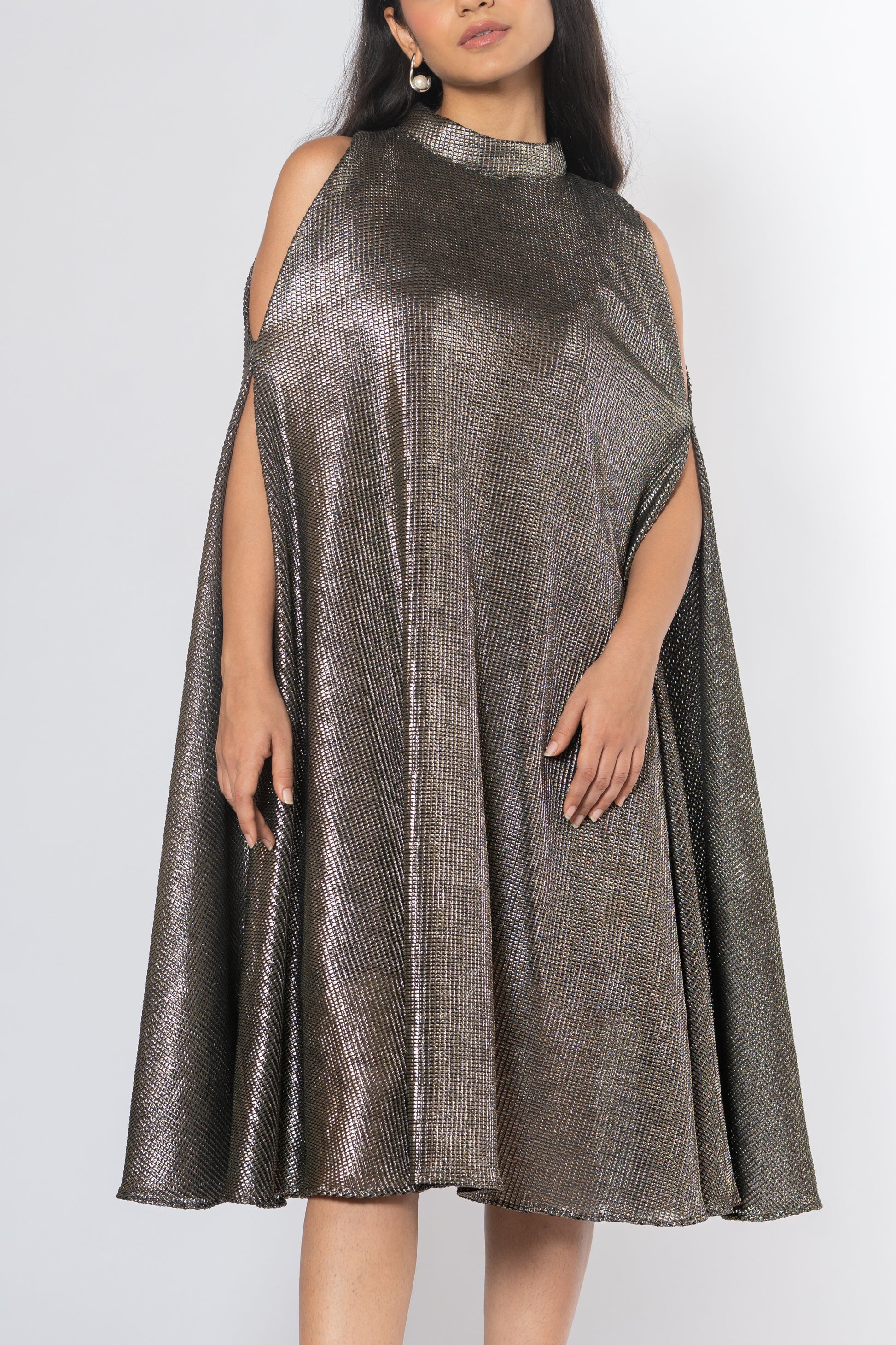 Metallic Cold Shoulder Dress