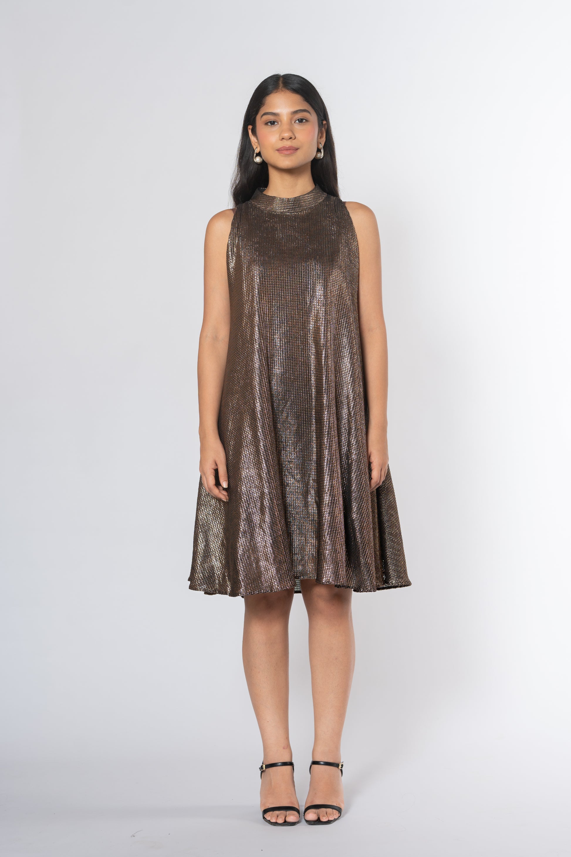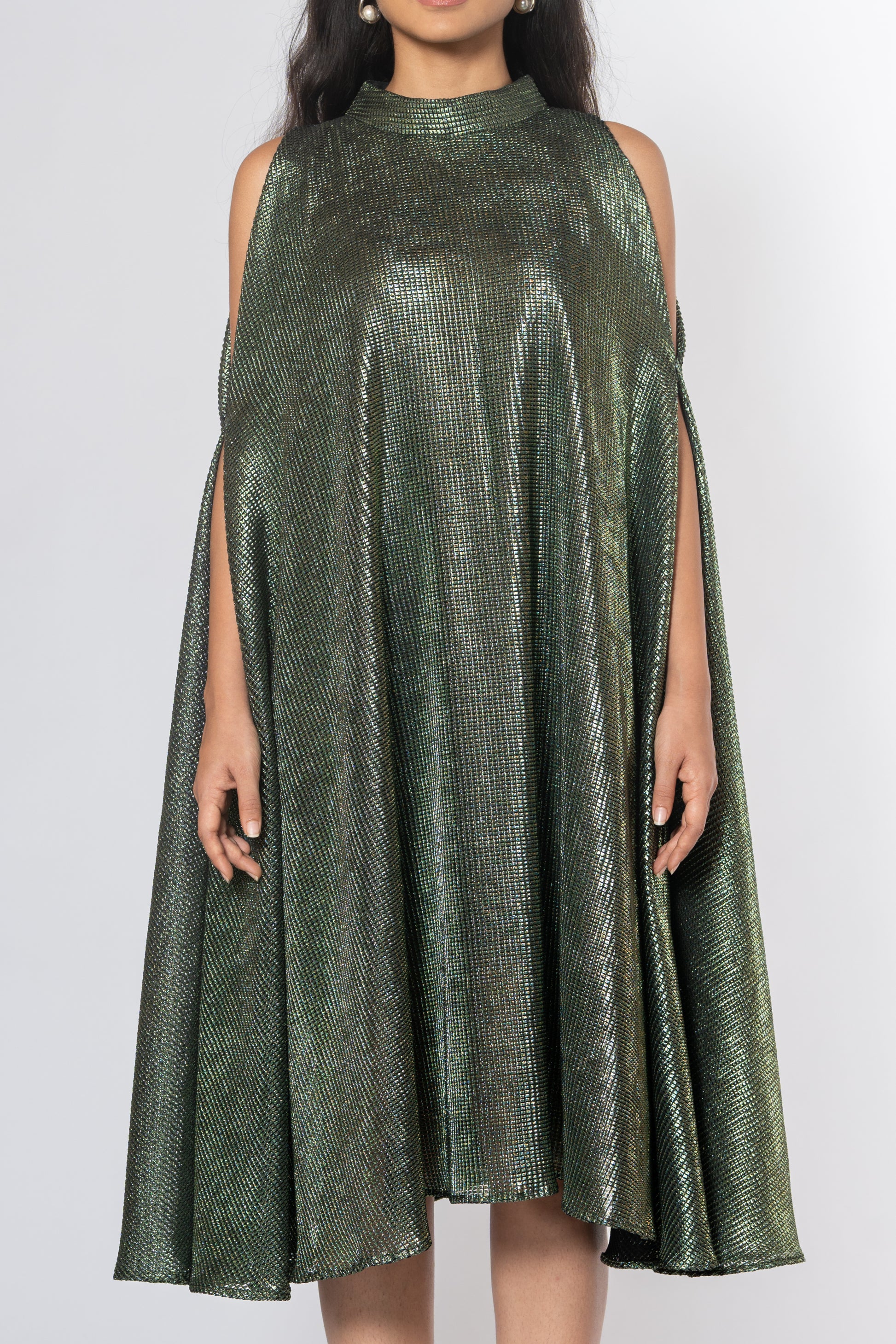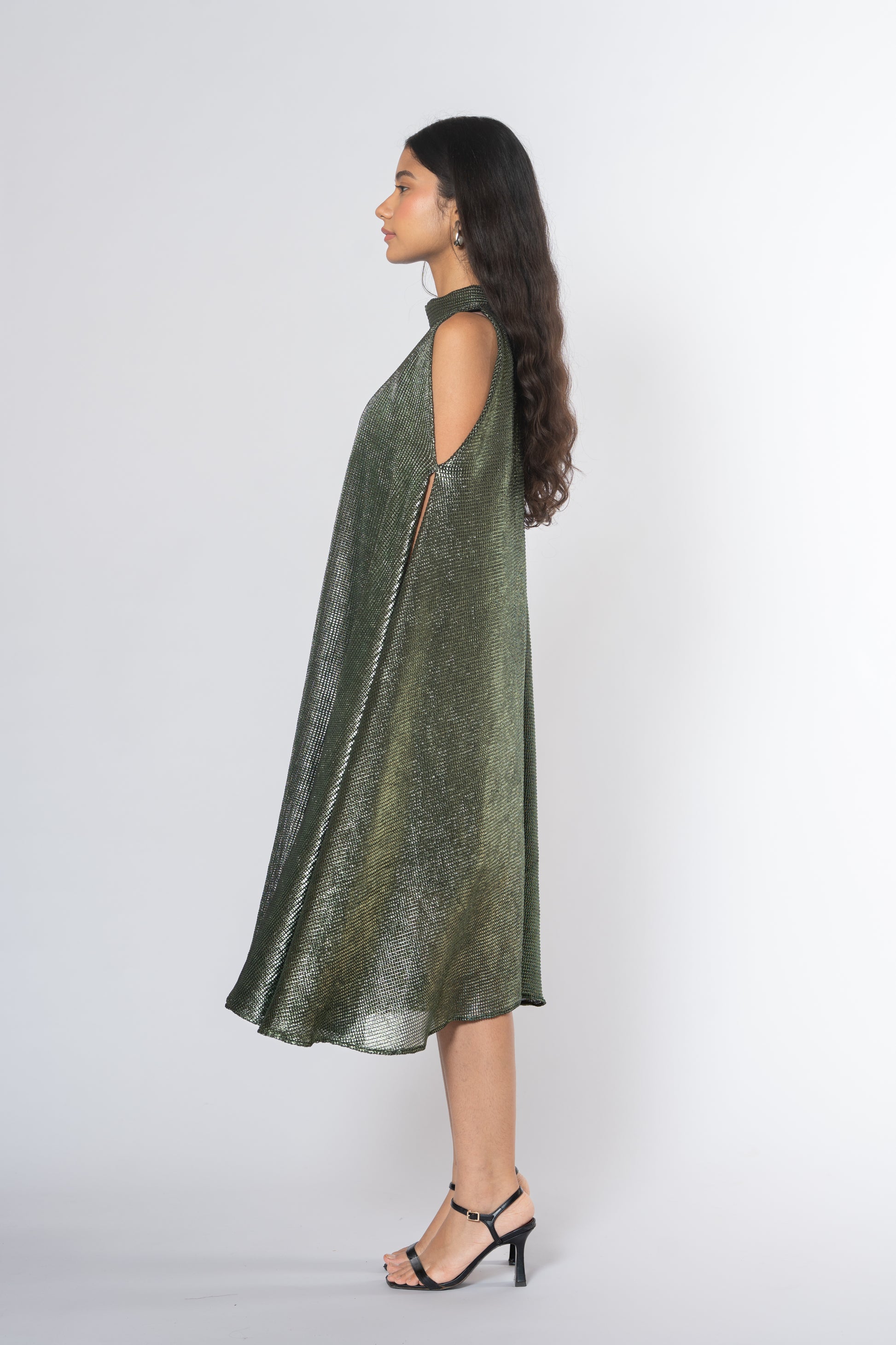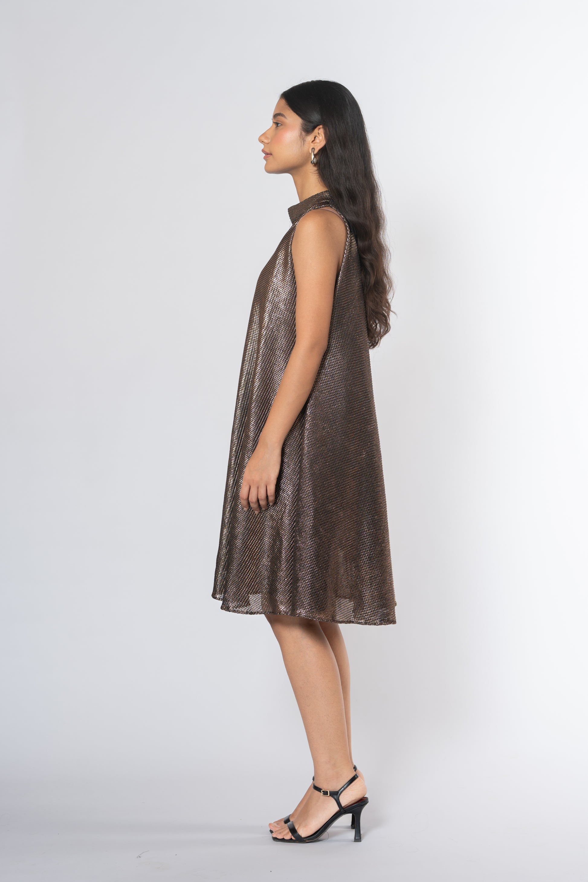Metallic Cold Shoulder Dress